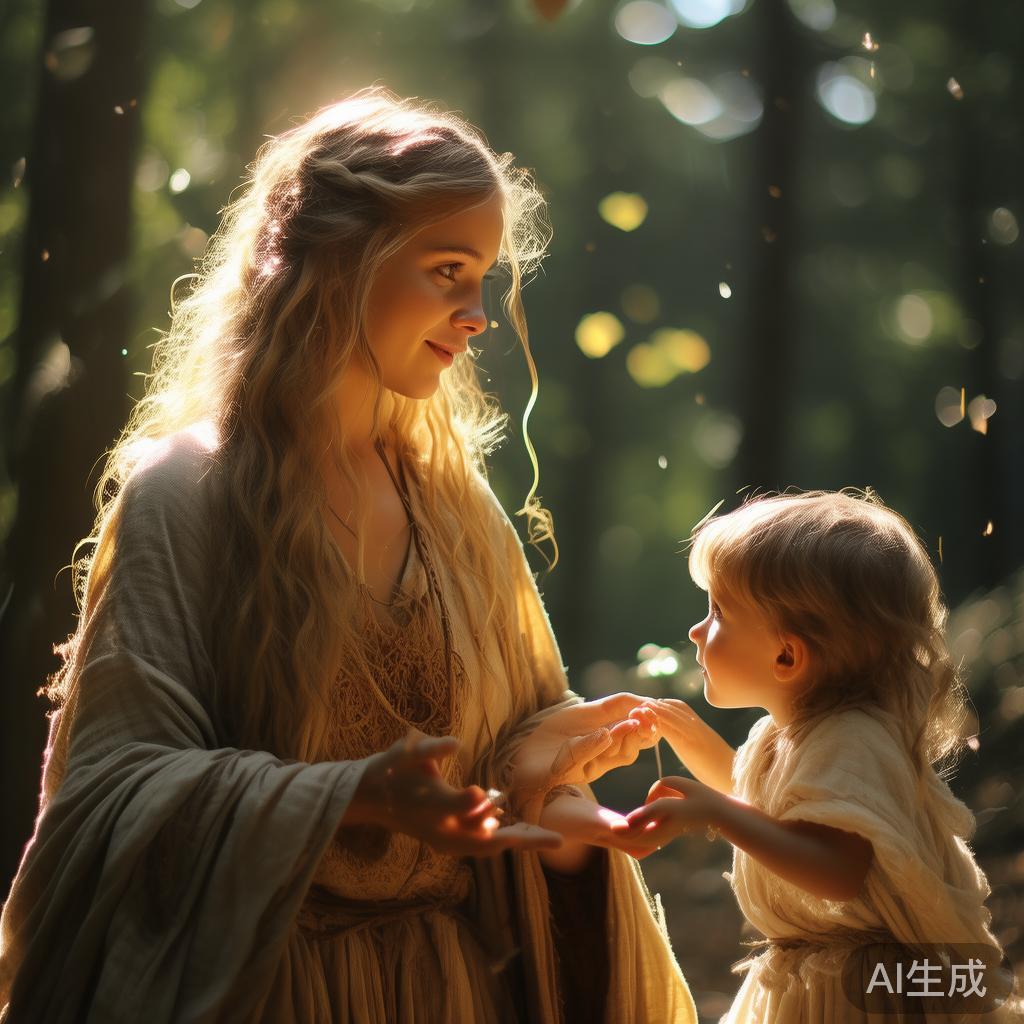 女先知通过一些咒语,为小羊和小鱼解除了魔法,他们终于恢复了人形。我觉得这一幕真的很动人,不禁松了一口气。此后,女先知还把他们带到森林里的一个小木屋,从此,兄妹俩过上了简单快乐的新生活,再也不用忍受那些无辜的痛苦和折磨了。这让我心底升起一种温暖,比起之前的辛苦,现在至少他们可以找回属于自己的幸福。