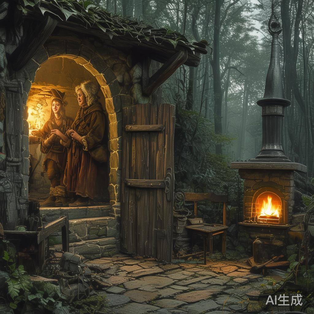 他们来到广阔的空地,坐下了。紧张的氛围依旧弥漫。这时,一个老太婆朝他们走来,关切地问:“为何如此悲伤呢?”