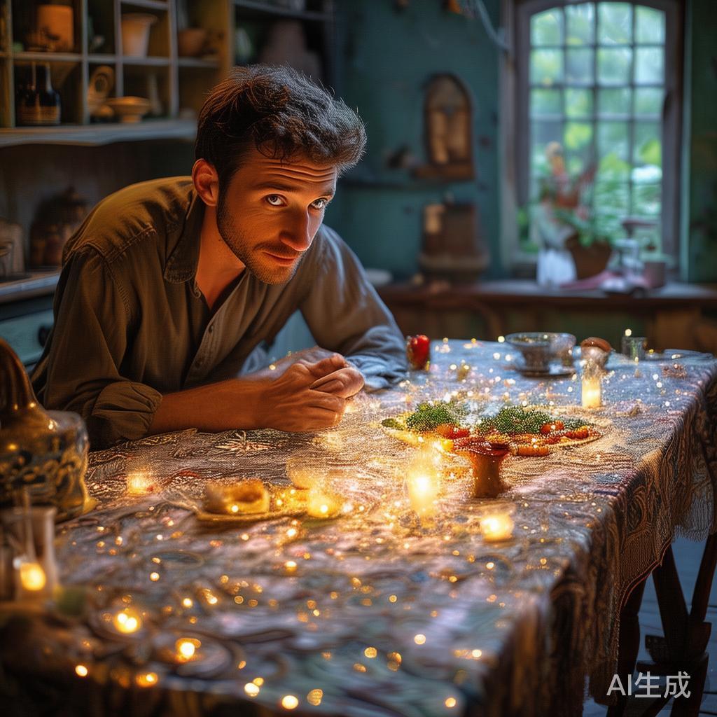 傍晚,他又感觉饿了,试着把桌布铺开,心里想着:“希望能再来一些美味!”话音刚落,桌子上的每个角落又齐刷刷地摆上了各种珍馐美味。