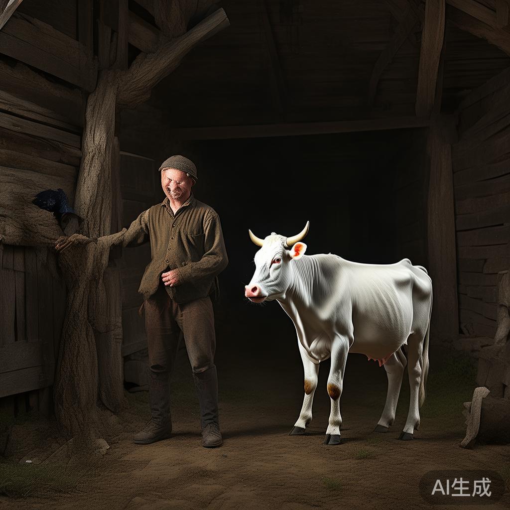 经过一番争论,小农夫决定上镇长那告状,最终镇长判定牧牛人粗心,罚他赔偿一头小牛给小农夫。这简直就是意外之喜,他们兴高采烈,谁能想到,这只新买来的小牛很快因为缺乏食物而不得不宰掉。他们将牛肉腌制好,牛皮打算卖掉,再用钱买新牛。人生总是如此无常,让人感到哭笑不得。